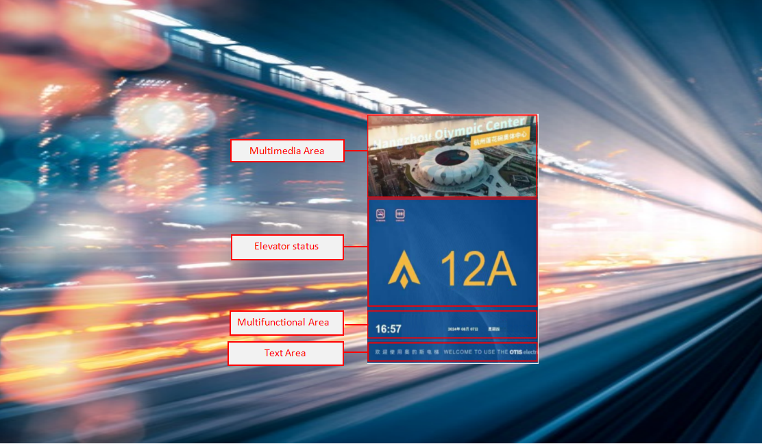 1. Elevator Operation Information: Floor information, direction of travel, special function icons, fire alarm, exit from service, etc.