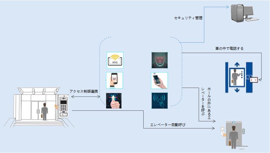エレベーターアクセス制御システムは、エレベーターカー內(nèi)のリーダーとエレベーター機械室にあるコントローラーから成り立っています。
