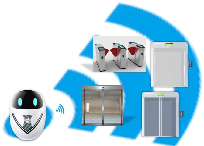 ロボットは、WIFI、4G、Lora、その他の通信方法を通じて、ドアを開ける、ゲートを通過する、エレベーターを呼ぶ、エレベーターに乗るなどの指示を送信します。