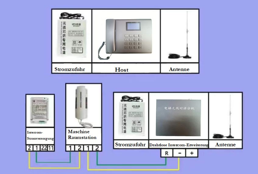 Drahtlose Kommunikationssysteme mit Frequenzmodulationstechnologie. Sie k?nnen innerhalb einer Entfernung von 3 Kilometern klare Anrufe ohne Verkabelung t?tigen, Notrufe unterstützen und der Host kann 300 Aufzüge zentral verwalten. Es ist eine sehr kostengünstige und praktische Kommunikationsmethode.