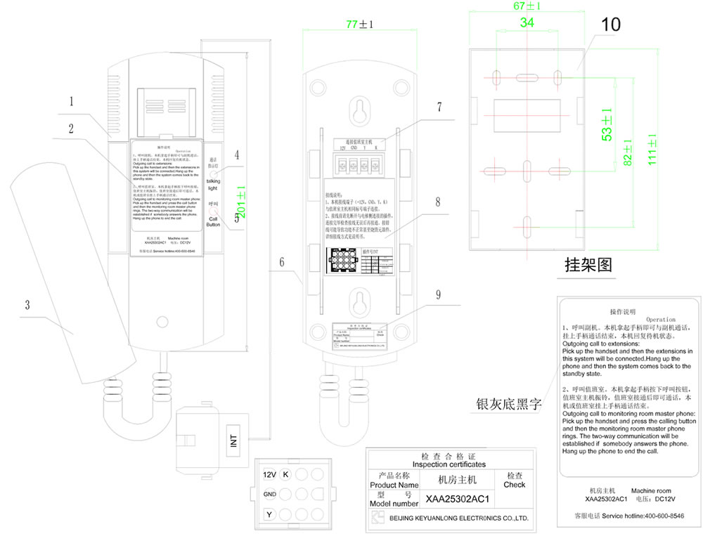 2、呼叫值班室。本機拿起手柄按下呼叫按鈕,值班室主機振鈴,值班室接通后即可通話,本機或值班室掛上手柄通話結束。