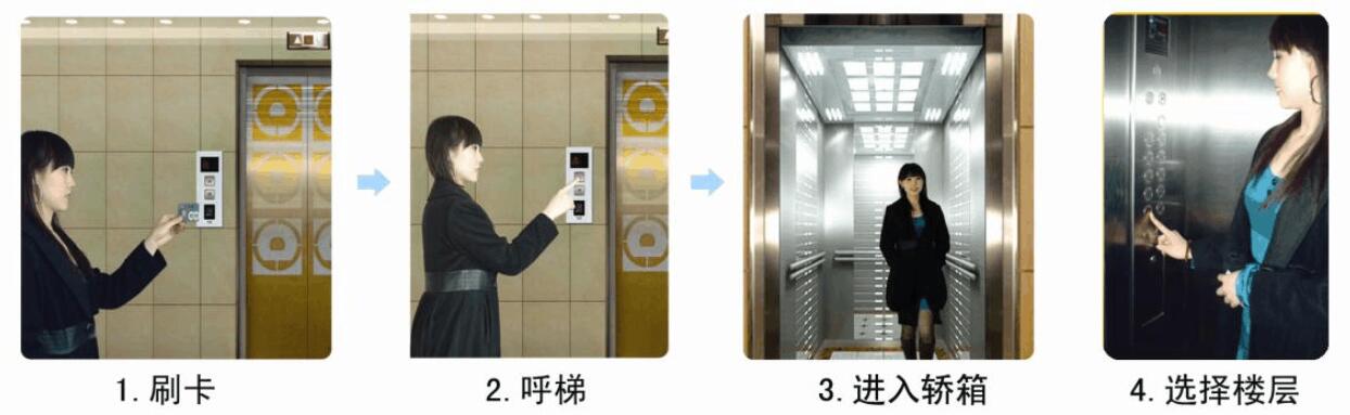 在電梯的廳外設(shè)置讀卡器,電梯電梯的使用人員刷卡后,電梯可以開放對IC卡預(yù)先設(shè)定的外召按鈕,提供給使用者登記;無卡或者未授權(quán)的IC卡,則不能登記,開放的公共區(qū)域方向的外召按鈕則無須卡可以登記??梢韵拗茻o關(guān)人員進入IC卡權(quán)限的電梯。